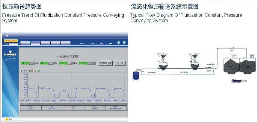 負壓輸送系統是利用低于1kg/cm2的氣體壓力,采用負壓(吸送式)方式并以較高的速度來拉動粉體物料使其通過管道輸送至灰庫,這種輸送方式混合比較低,但是具有下料現場干凈的顯著優點。