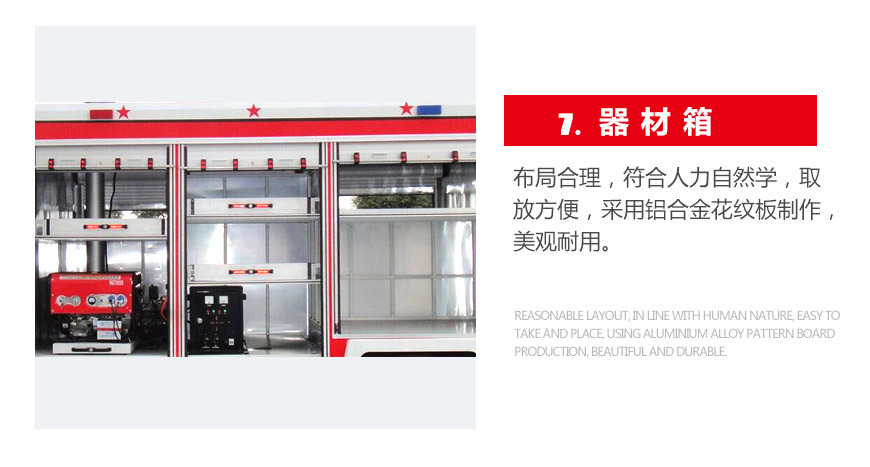 泵房 | 后置泵,泵房左右兩側、器材箱左右側均有新款易拉高強度鋁合金卷簾門。 | ||||