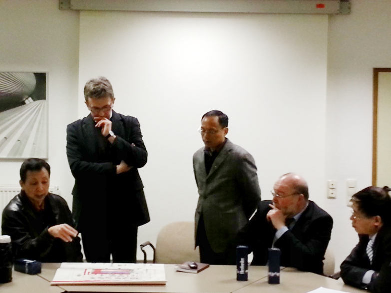 徐國富(中)與德國同行討論鍋爐節能新概念