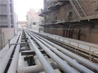 截至發稿日,綜合管架完工率已達到85%,空壓機房土建部分建筑已達零米以上,鋼結構房初現雛形,其中1#爐于2013年6月20日停機,6月27日上午10點再次點爐時,1#爐氣力輸灰系統,空壓機系統均順利投運,2#機組也進入調試階段,工程量已完成70%。