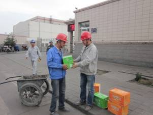 項目部經理郭亮親臨現場查看工程進度時還特意組織開展現場送清涼活動,安排人員購買飲料并現場發放,體現人文關懷,情真,感恩,凝聚在心手相連一瞬間。