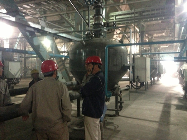 7月中旬,源牌集團杭州華源前線能源設備有限公司董事長蔣聞文來到石嘴山項目現場,視察該項目現場情況。由我公司承攬的國電寧夏石嘴山發電有限公司#1、2機組靜電除塵器干除灰系統改造EPC總承包工程已進入收尾階段,168試運行結束后該改造工程隨即完工,將交付業主使用。