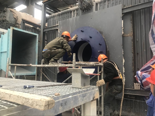 鍋爐設備到達現場時,項目經理吳玉燕緊急處理場地平整事宜,當天下午開始設備就位: