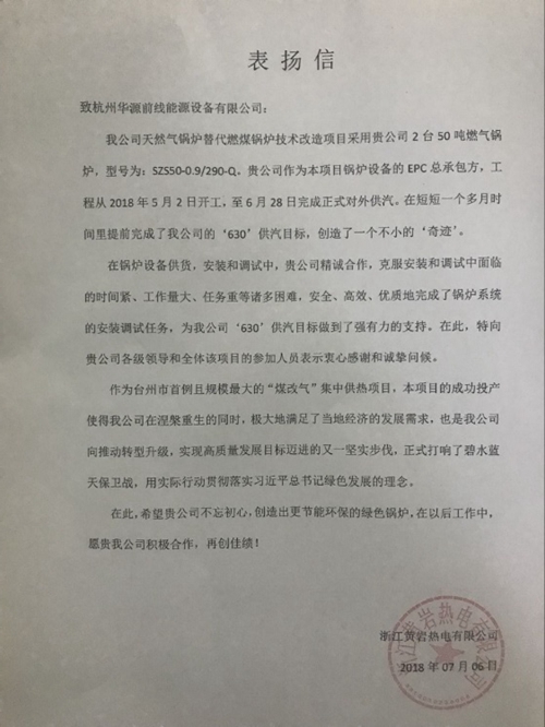 電廠給予我們滿滿地信任,滿溢在表揚信的字里行間: