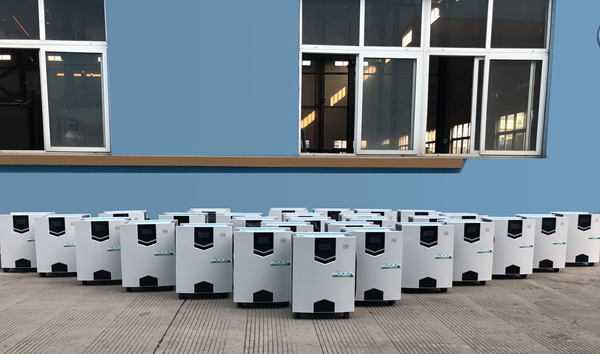 (車間門口成排擺放著當天要發(fā)貨的小型直熱機組)