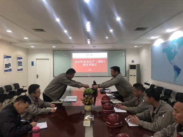 為進一步落實年度安全生產和消防安全工作,預防各類安全事故的發生,2019年2月27日,杭州華源前線能源設備有限公司舉行了《2019年度安全生產(消防)責任書》簽訂儀式。公司董事長蔣聞文、總經理助理郭亮、生產部經理單永平以及各項目班組負責人參加會議。
