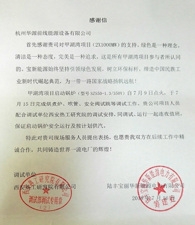 調試單位同時發來表揚信,稱贊我們配合度高,按計劃保障了主鍋爐供汽需求,嗯,這份肯定,我們收下了。