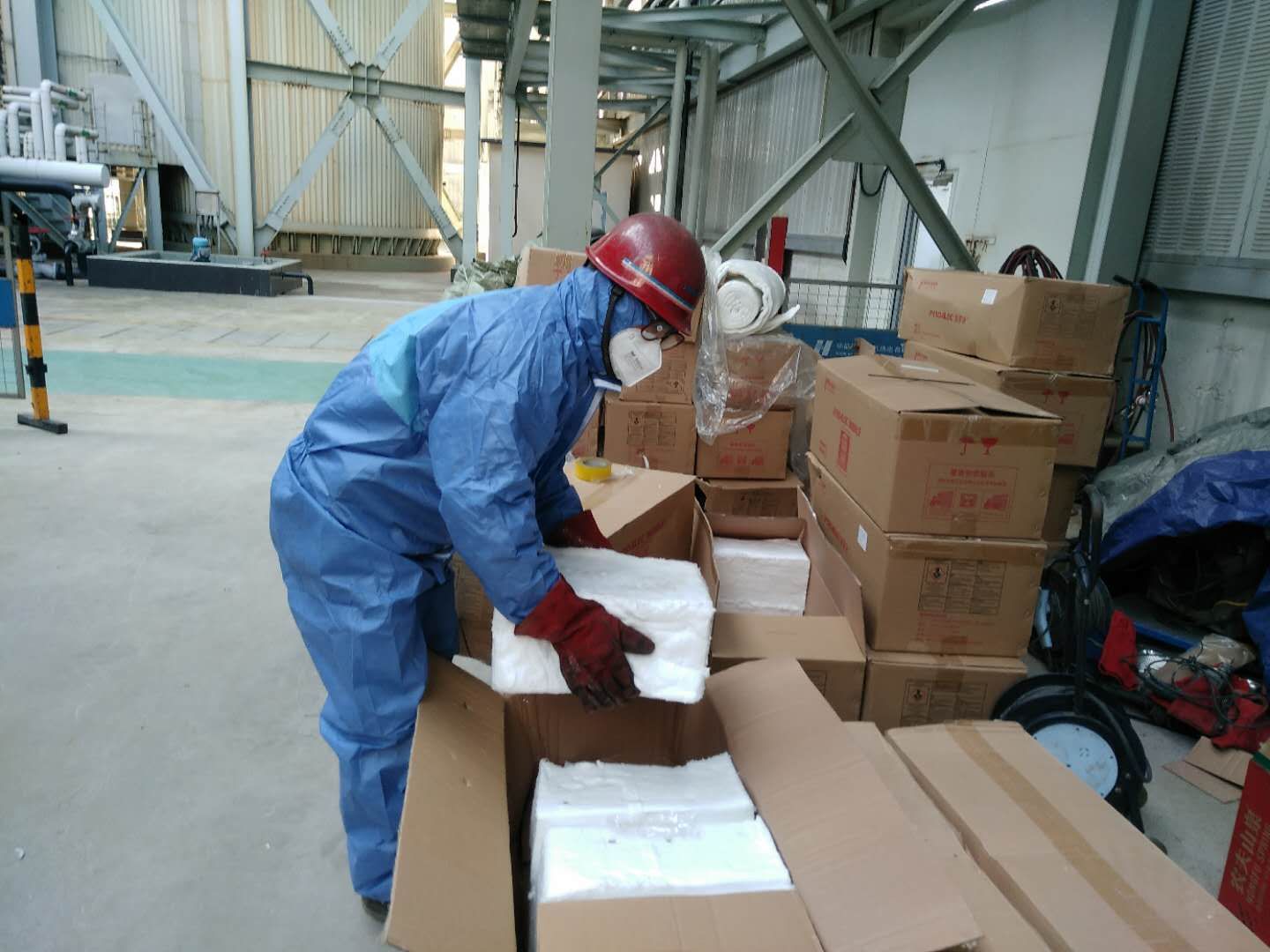 隨著復工復產的進行,桐鄉工業園區逐漸復工。為了能承擔起大面積企業復工的供暖工作,原先的燃氣鍋爐需停爐檢修。但之前安裝特殊保溫材料的廠家來自湖北公司,因為疫情無法到達現場。為了園區內的企業能夠正常復工復產,華源前線主動擔起責任,派廠內具有豐富保溫材料安裝經驗的師傅到達現場開展檢修工作。