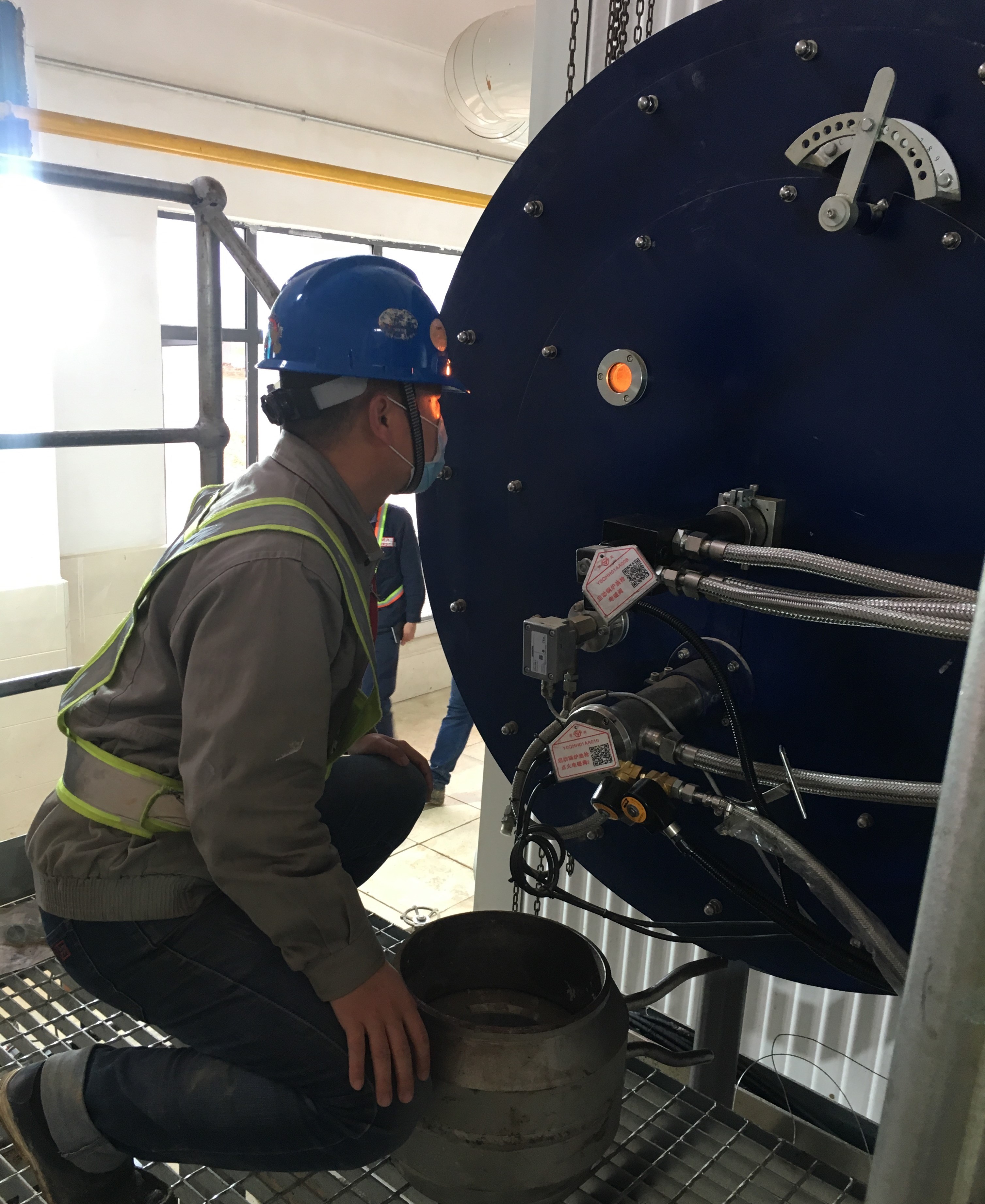 調試工程師廖兵兵在觀察啟動鍋爐運行情況
