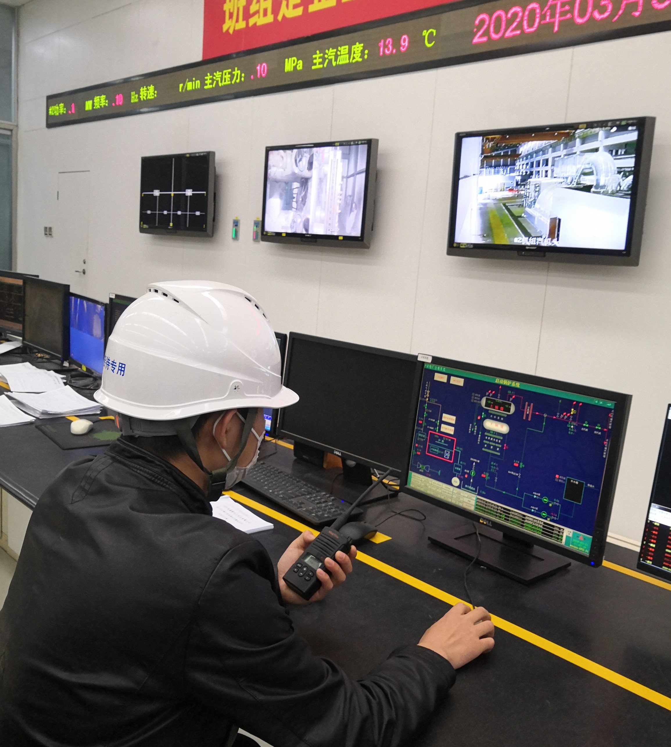 調試工程師阮拾萬在現場配合監視鍋爐運行參數