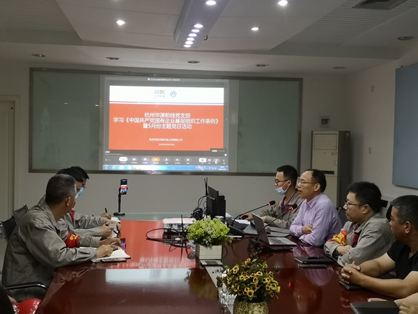 華源前線黨支部5月26日舉行主題黨日活動,全體黨員以會議形式深入學習《中國共產黨國有企業基層組織工作條例(試行》(以下簡稱《條例》)。前線黨支部書記、總經理徐國富主持學習會議。