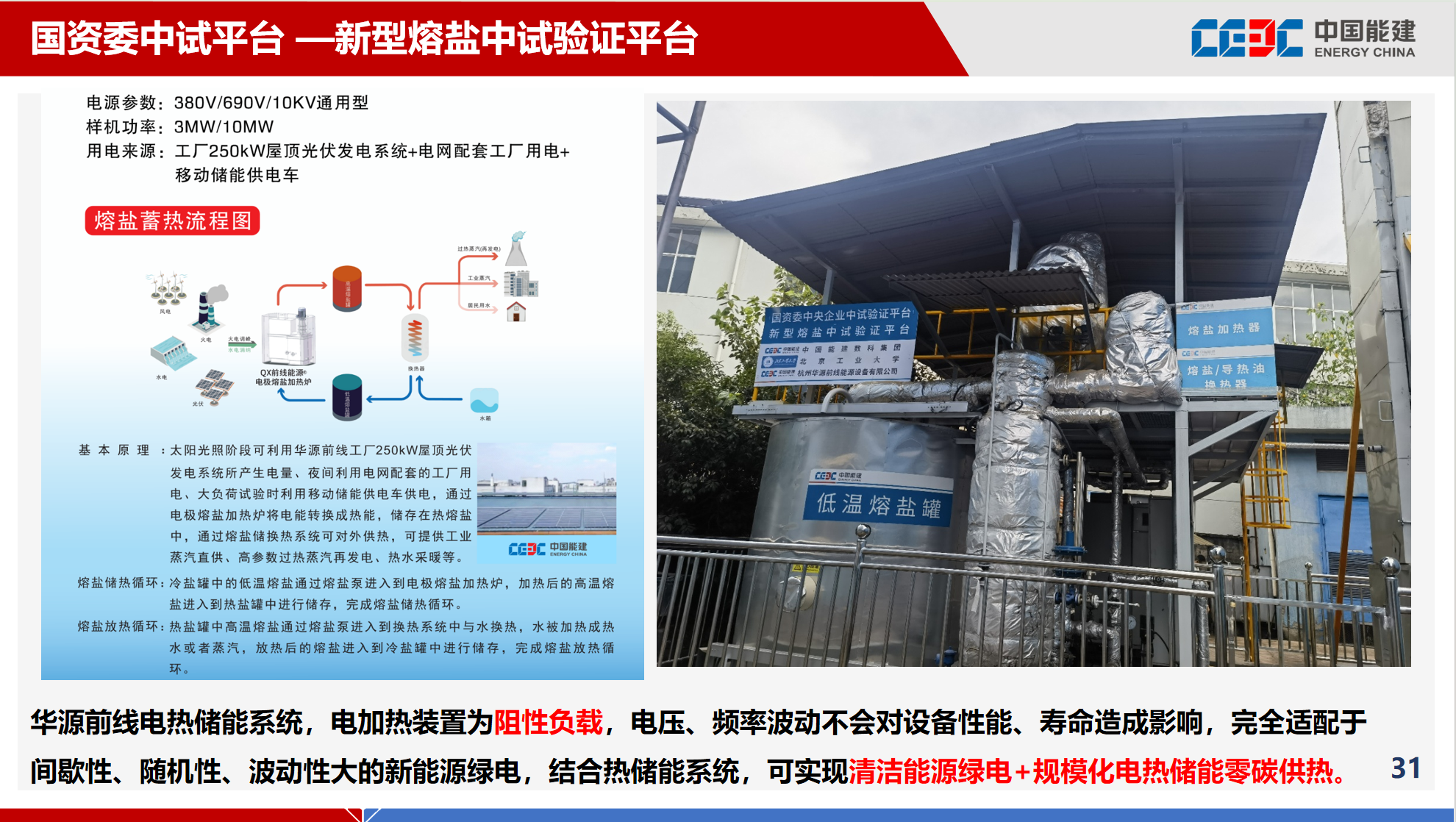 此外,華源前線還搭建起新型熔鹽中試驗證平臺(入選國資委《中央企業中試驗證平臺對外開放服務目錄》)、浙江省蓄能與建筑節能技術重點實驗室、MW級熔鹽電極加熱裝置開發研究平臺、球罐蓄熱儲能系統(規模化水蓄熱)開發研究平臺等高水平研發載體。