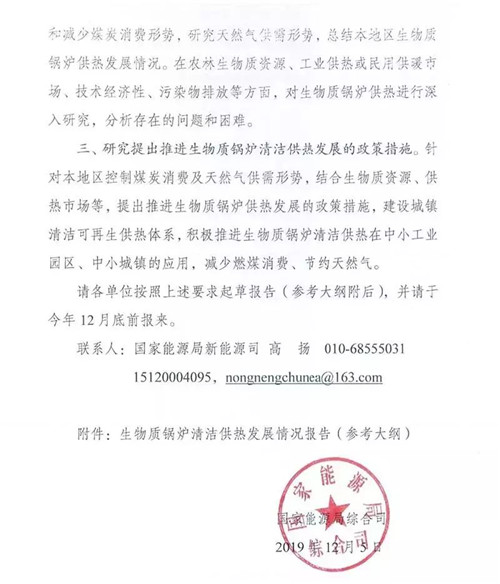 近日,國家能源局下發(fā)《國家能源局綜合司關(guān)于請報送生物質(zhì)鍋爐清潔供熱有關(guān)情況的通知》,要求各地方能源局、發(fā)改委、有關(guān)中央企業(yè)報送生物質(zhì)鍋爐清潔供熱相關(guān)情況。