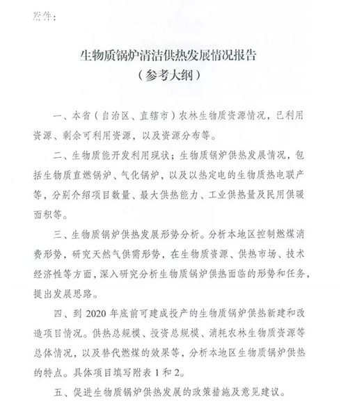 近日,國家能源局下發《國家能源局綜合司關于請報送生物質鍋爐清潔供熱有關情況的通知》,要求各地方能源局、發改委、有關中央企業報送生物質鍋爐清潔供熱相關情況。